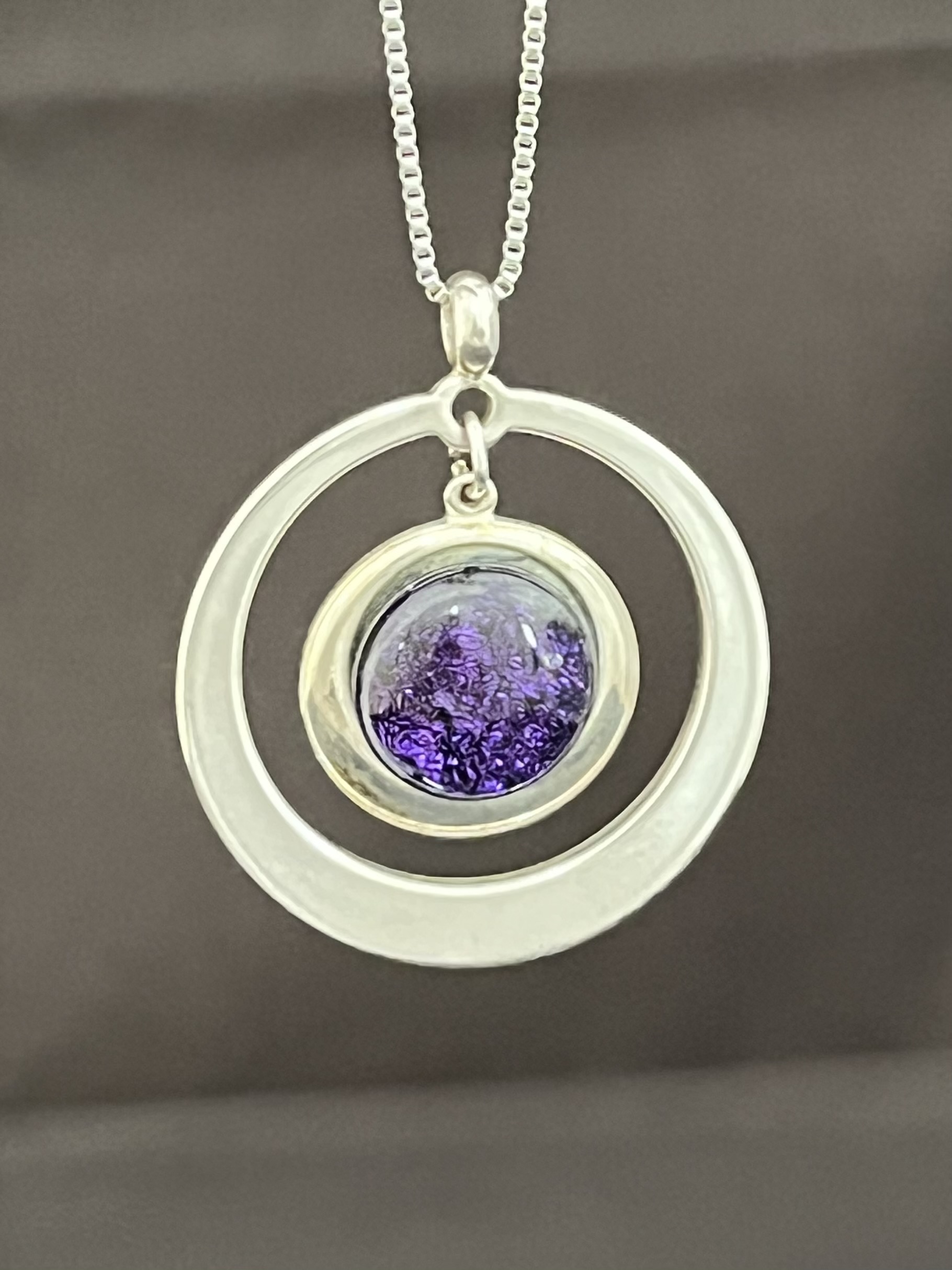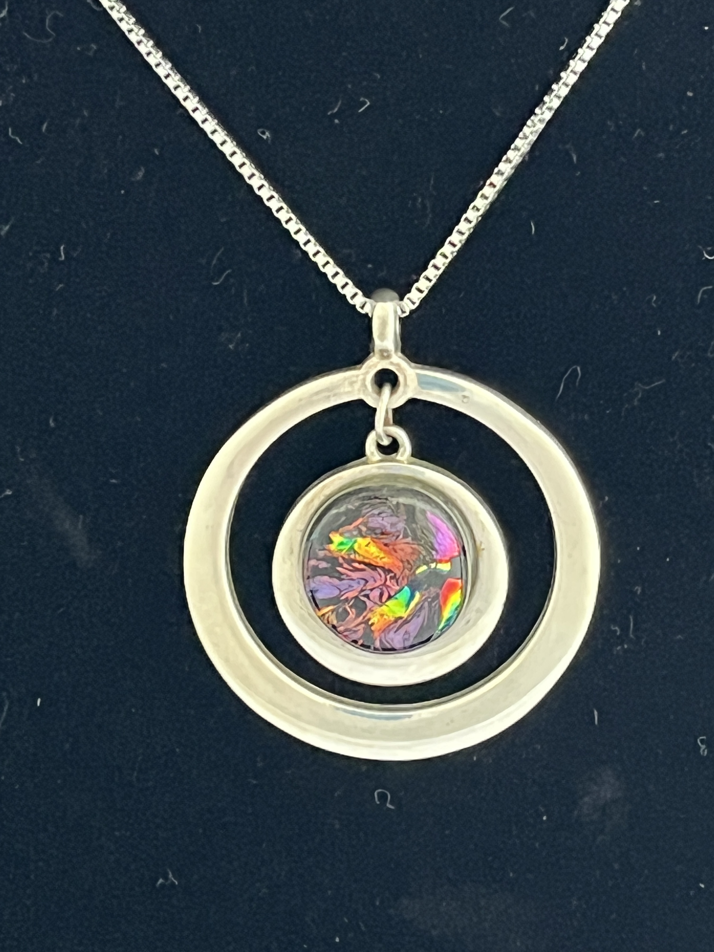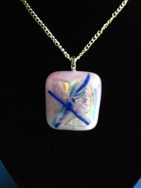 Abstract Dichroic pendant 1.5”Hx1.25″W (chain included)$36