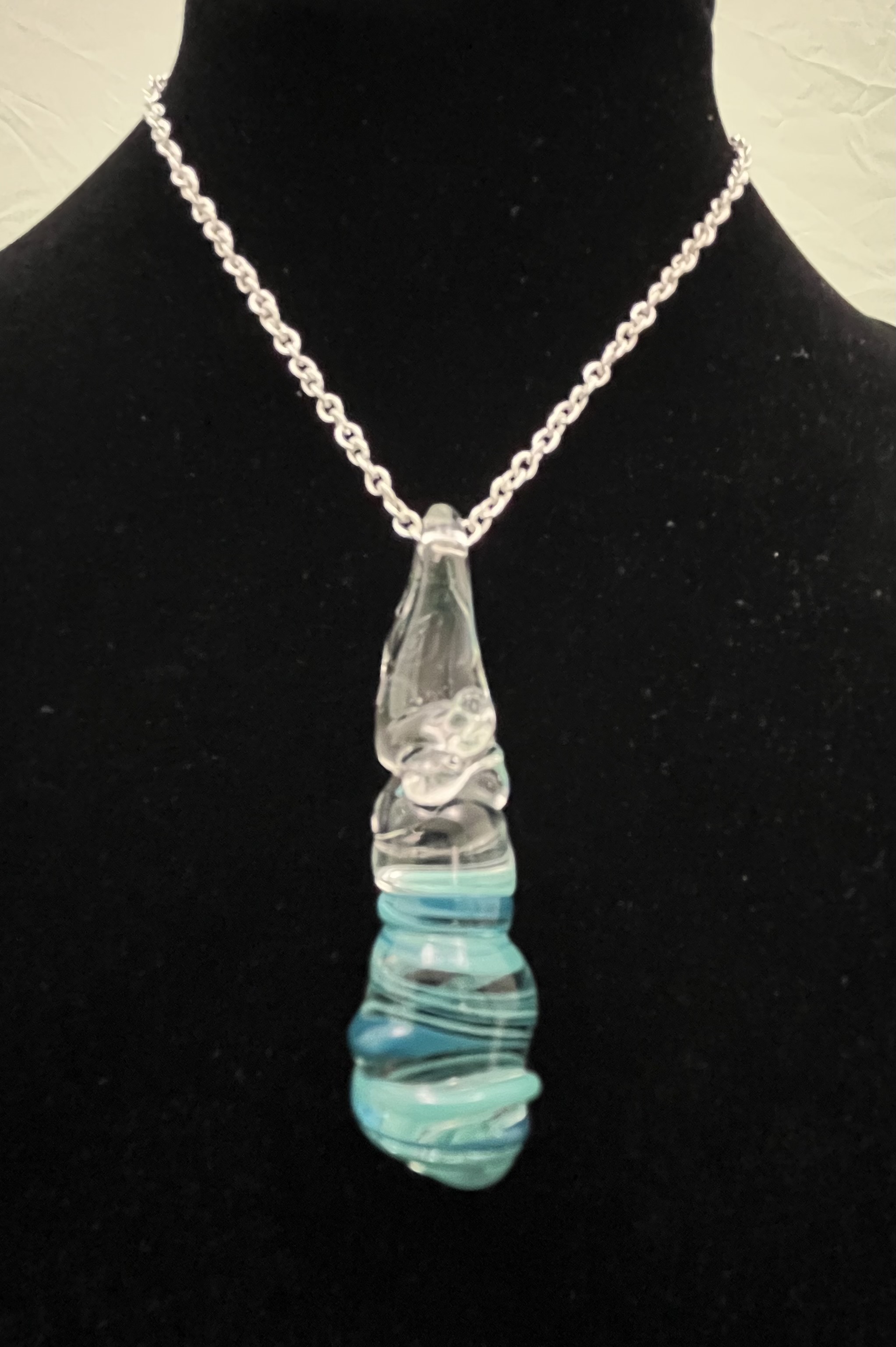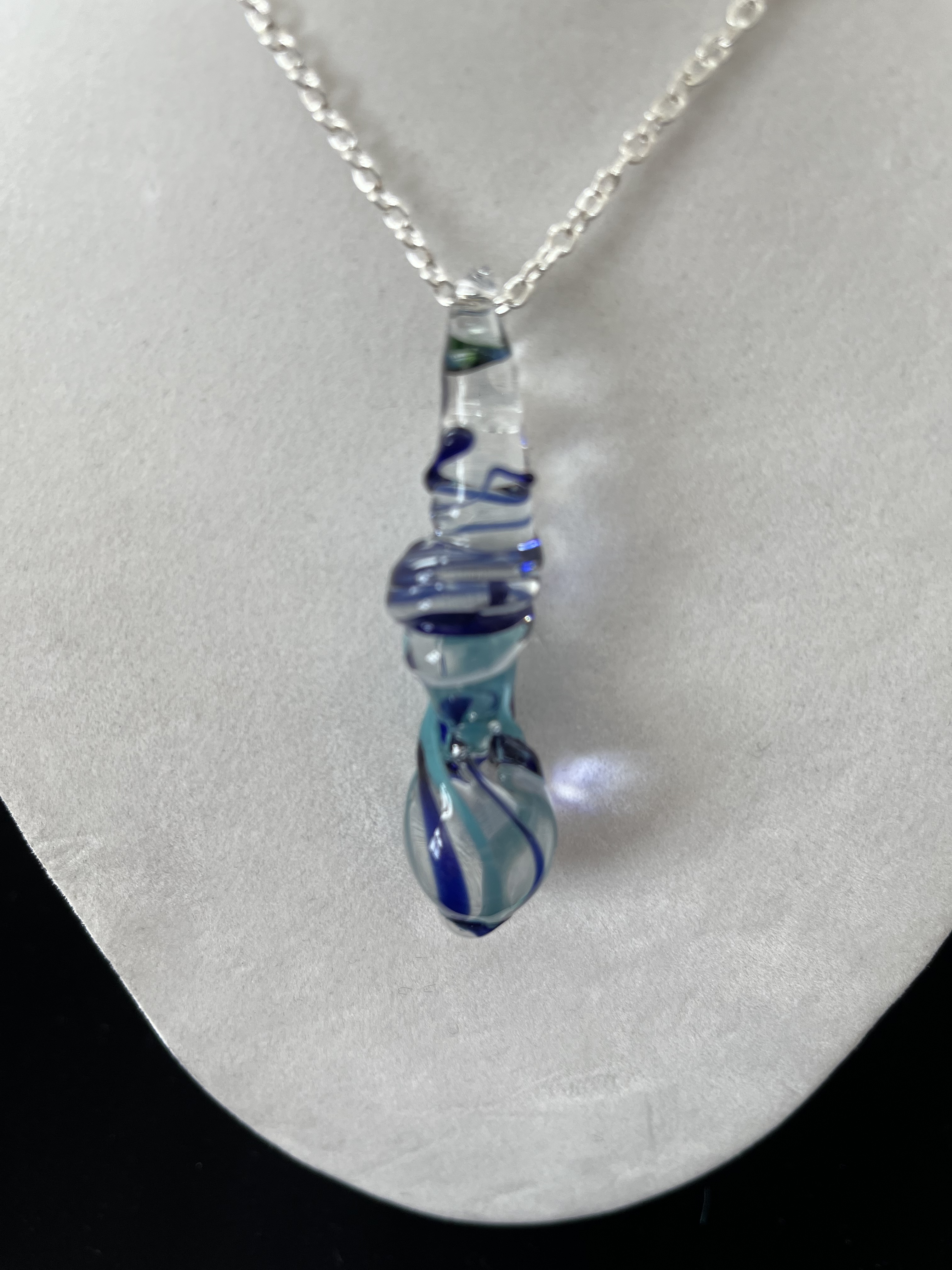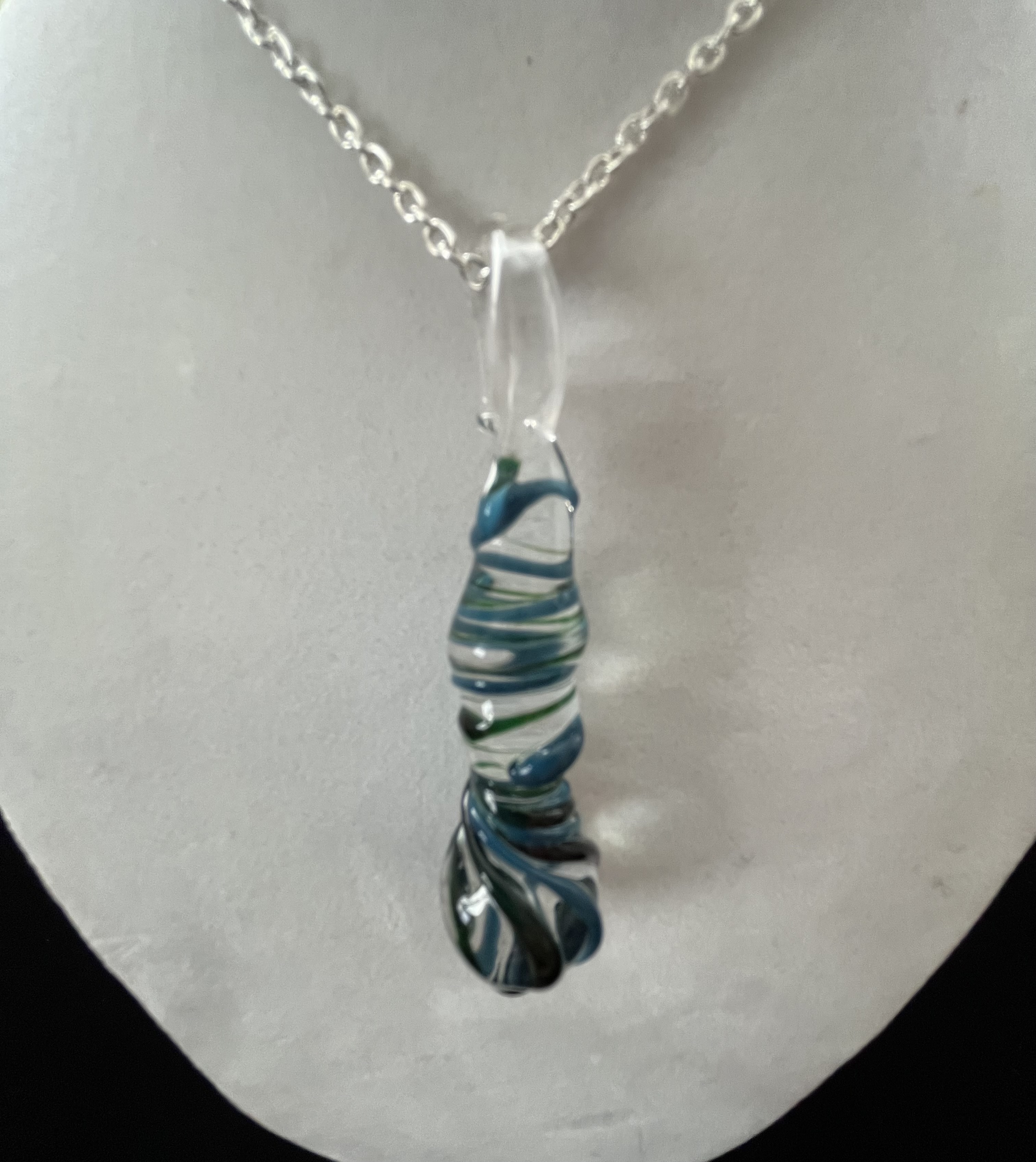Blue and green Drop pendant 3”H (includes bail)x0.63″W (chain included) $29