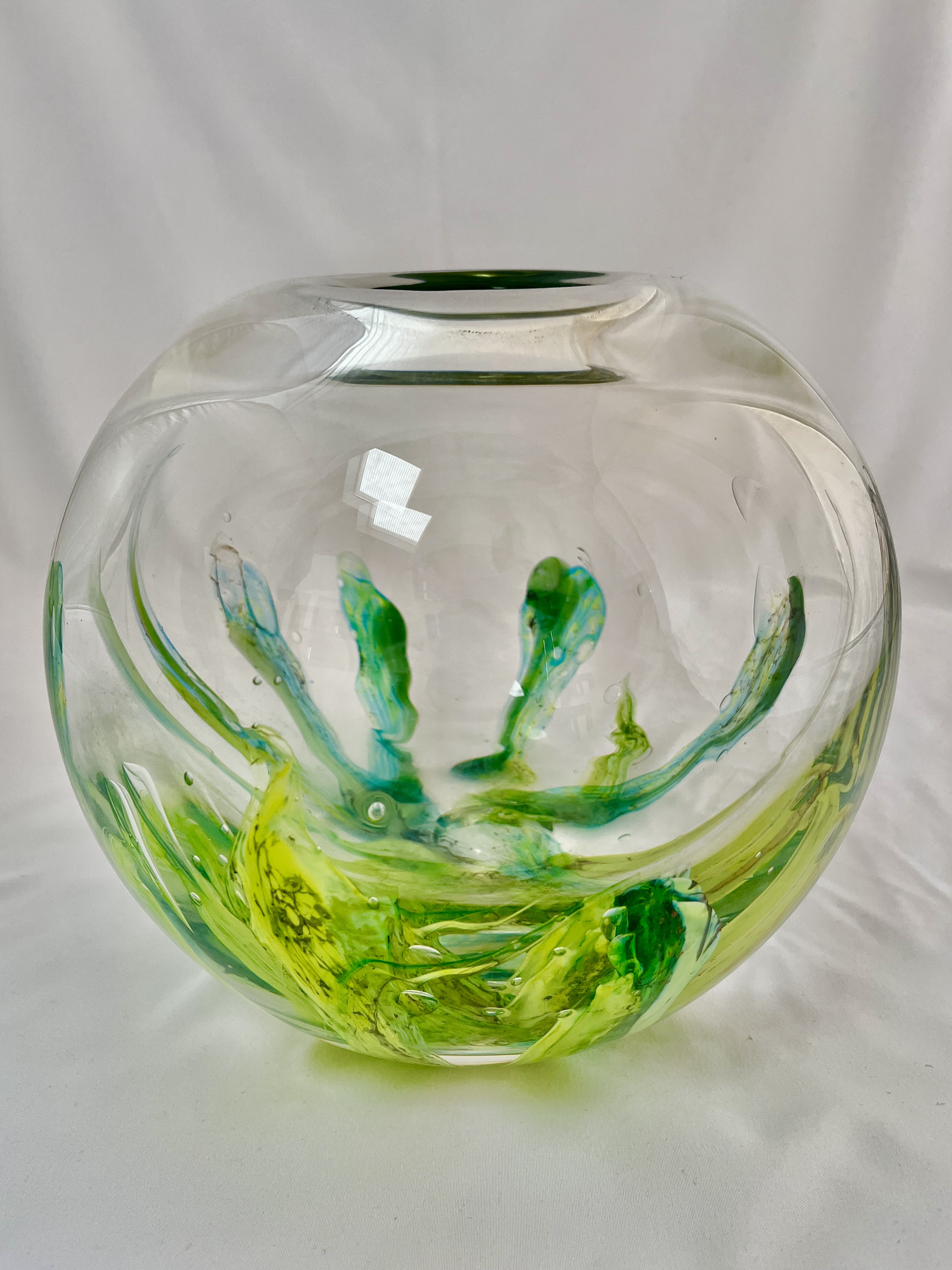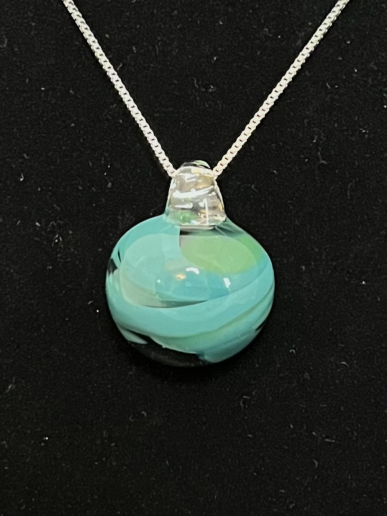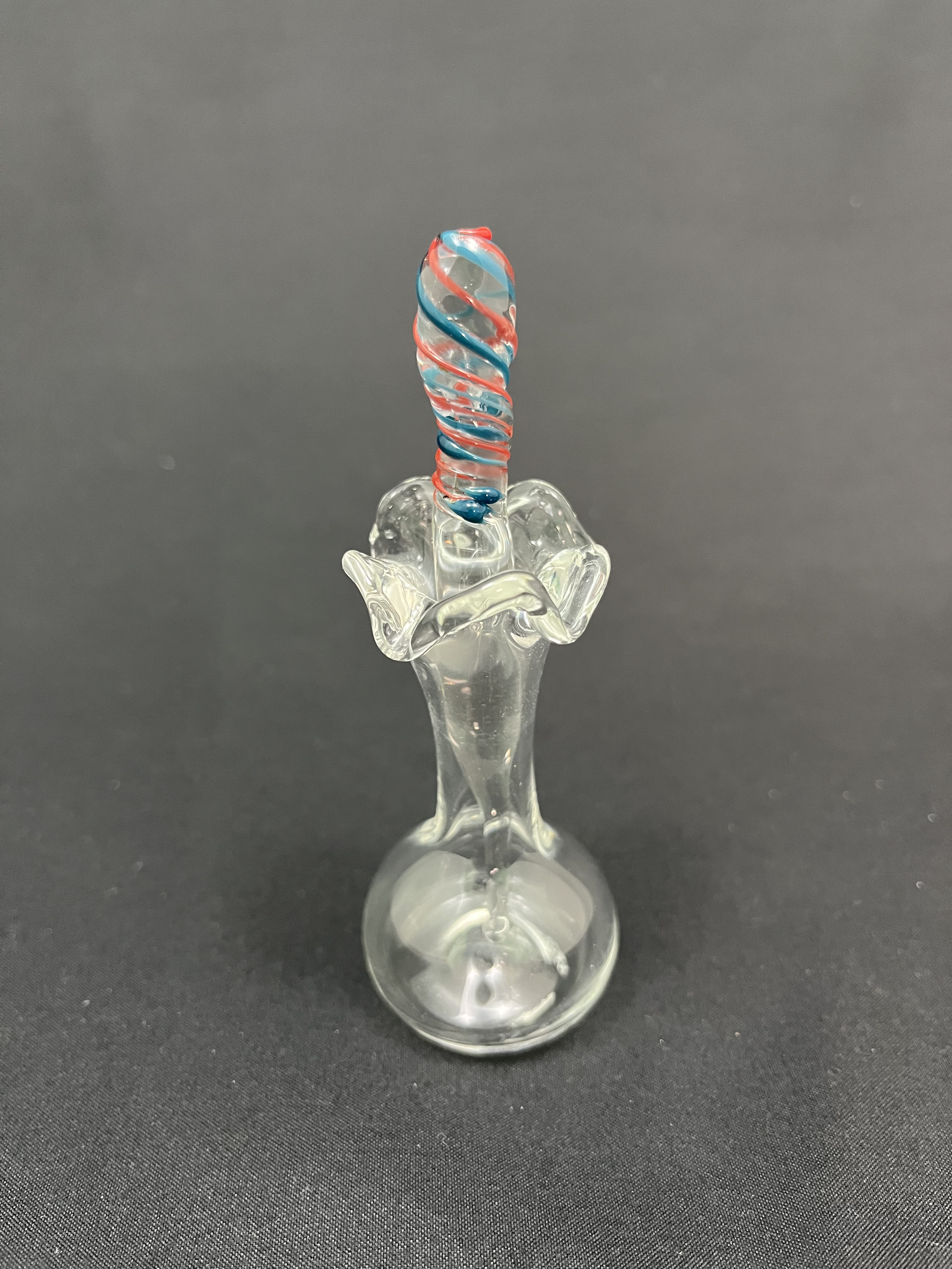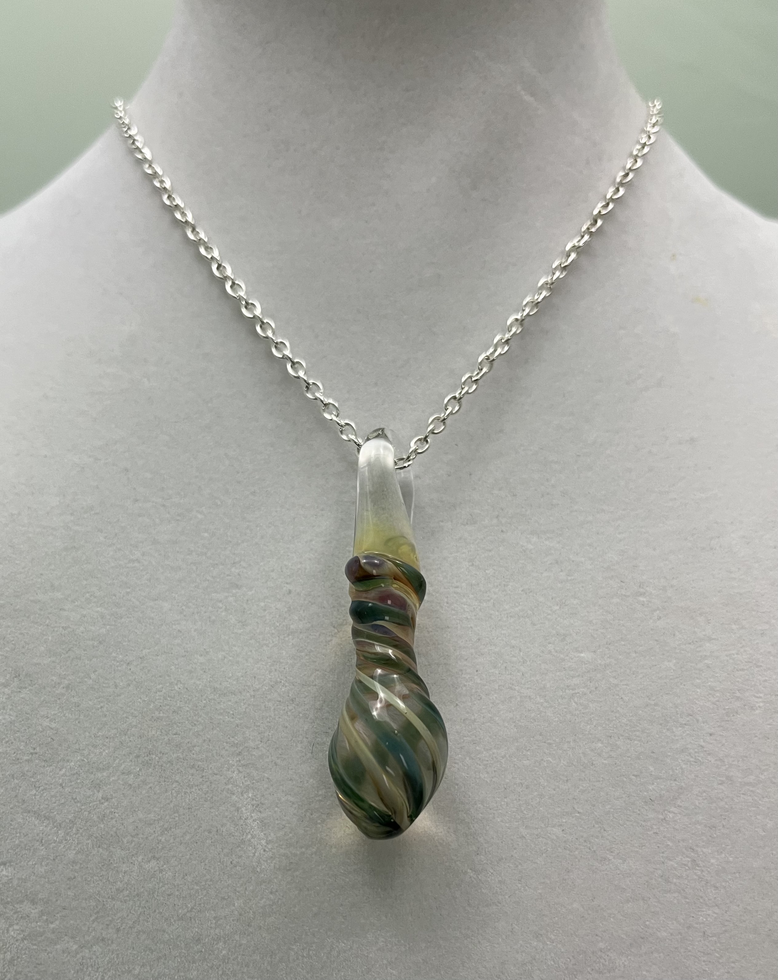 All glass pieces are handblown on a torch called lampworking or flameworking. Each piece is one of a kind original.