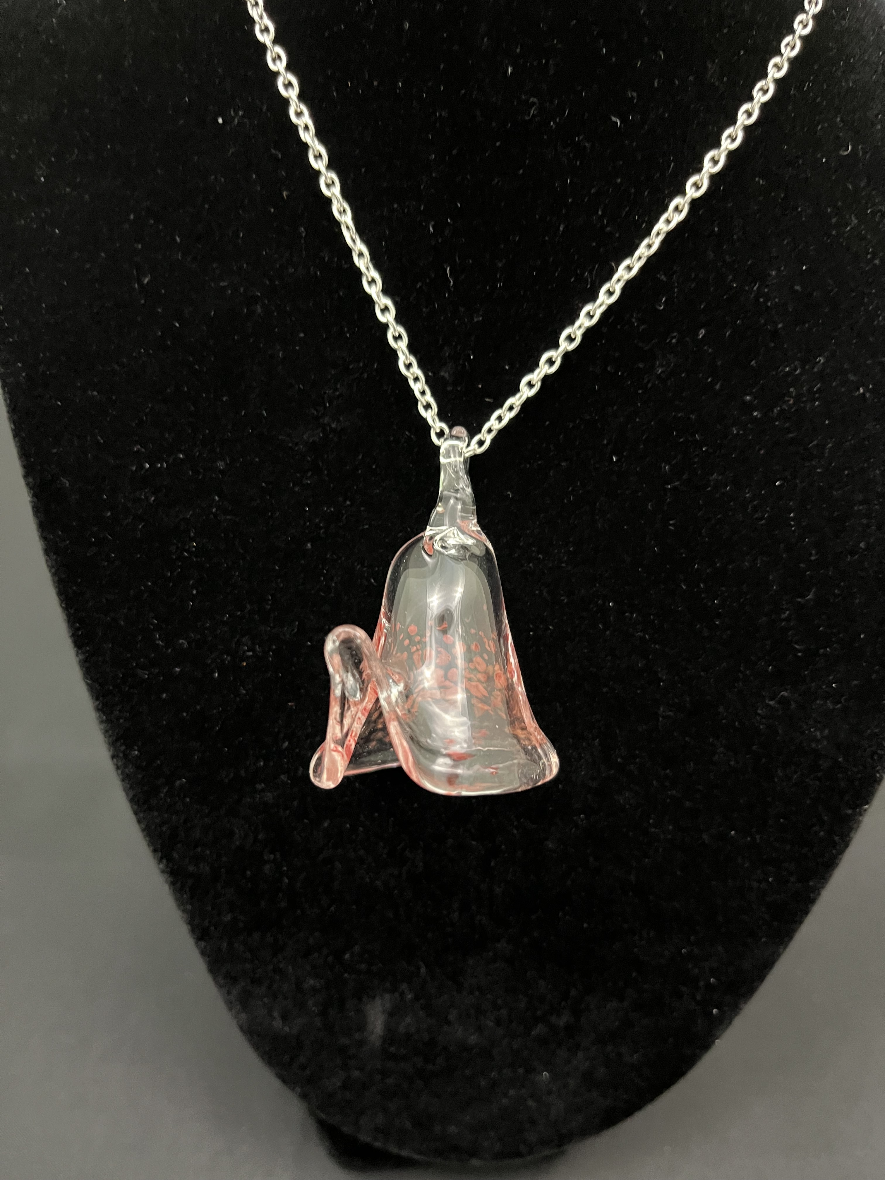 Red bell pendant 1.75”H (includes bail) x1.25”W (chain included)Sold
