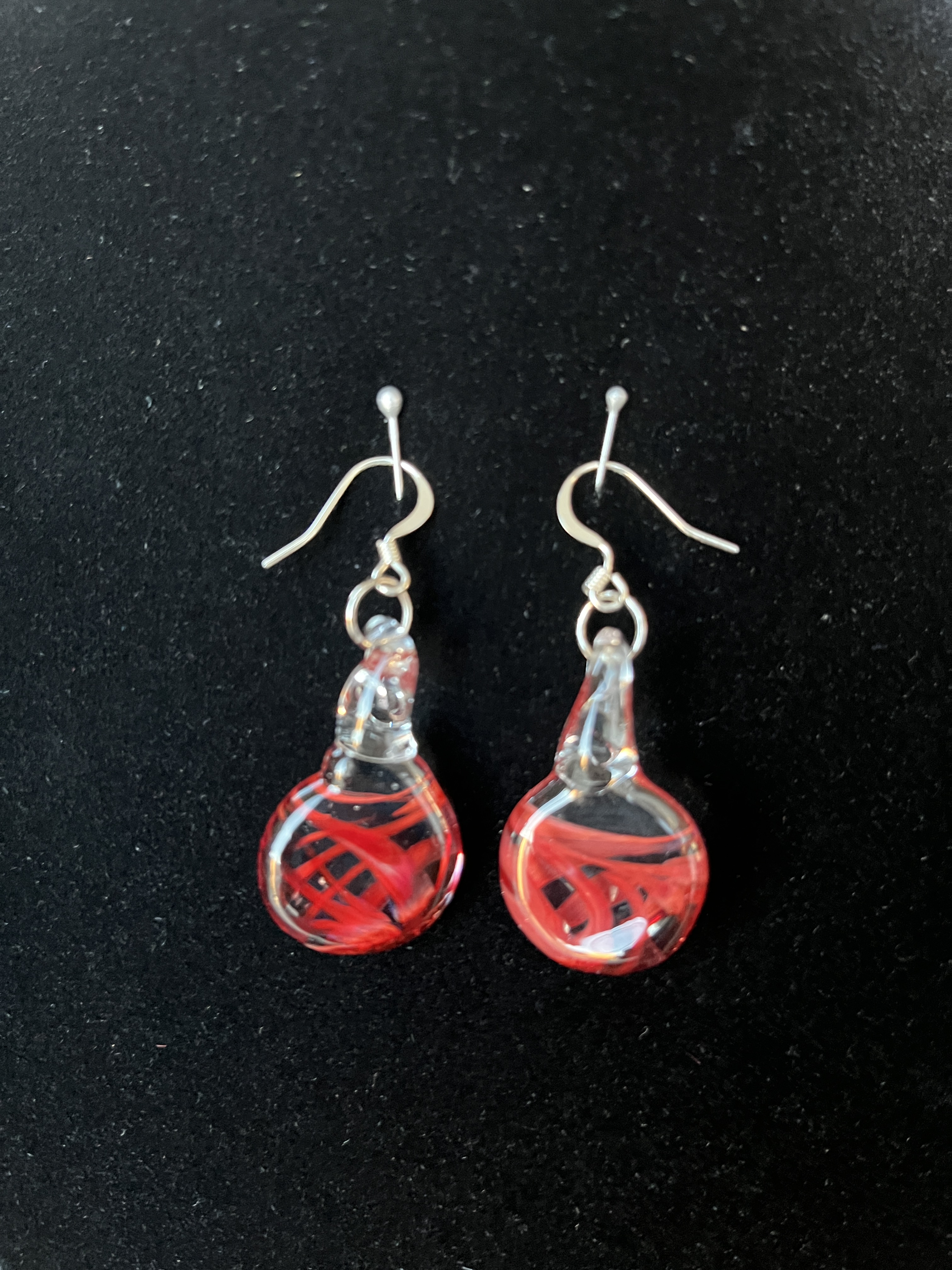 Red Abstract Earrings 1.13″Hx0.75”W $29