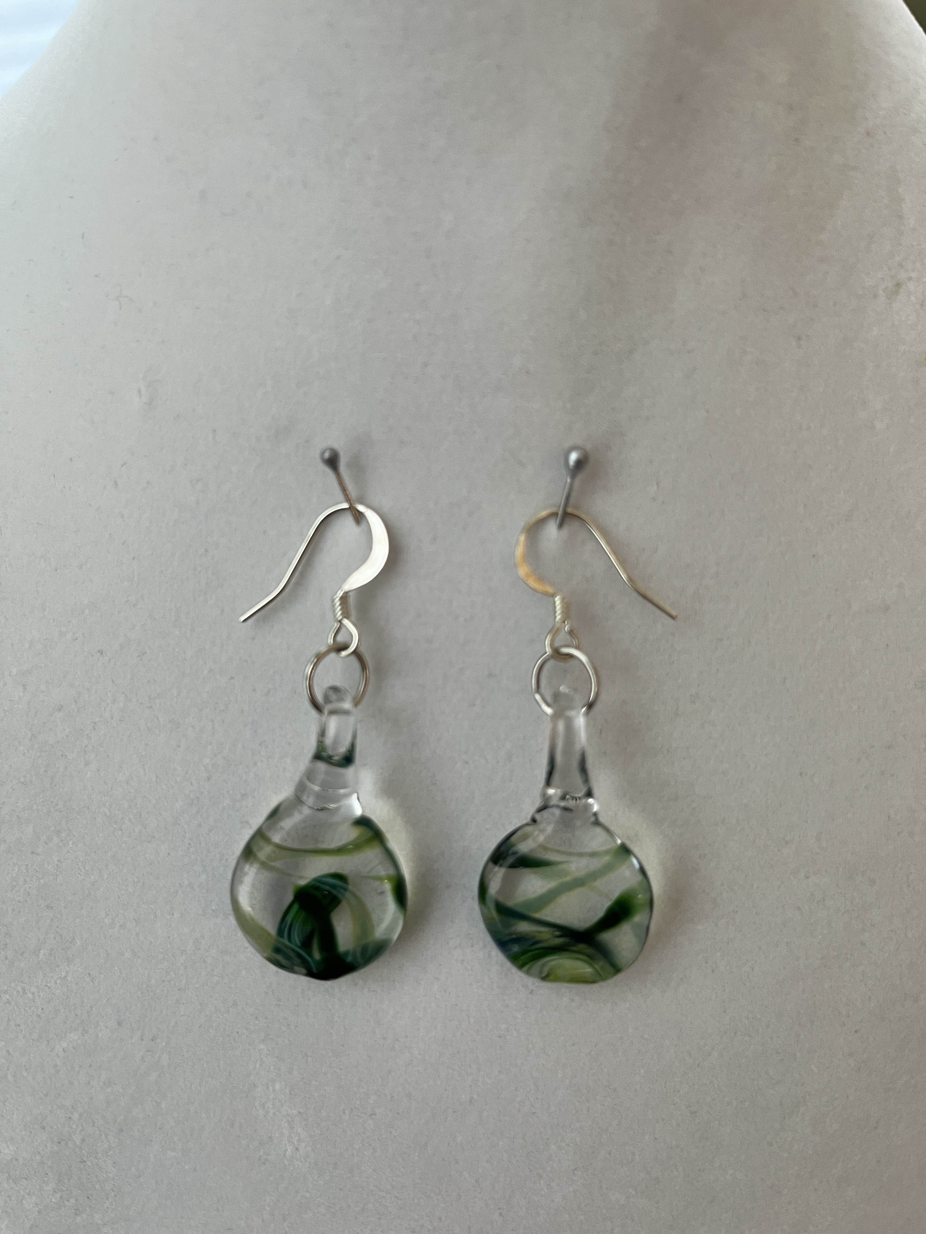 Green Abstract Earrings 1.13″Hx0.75”W $29
