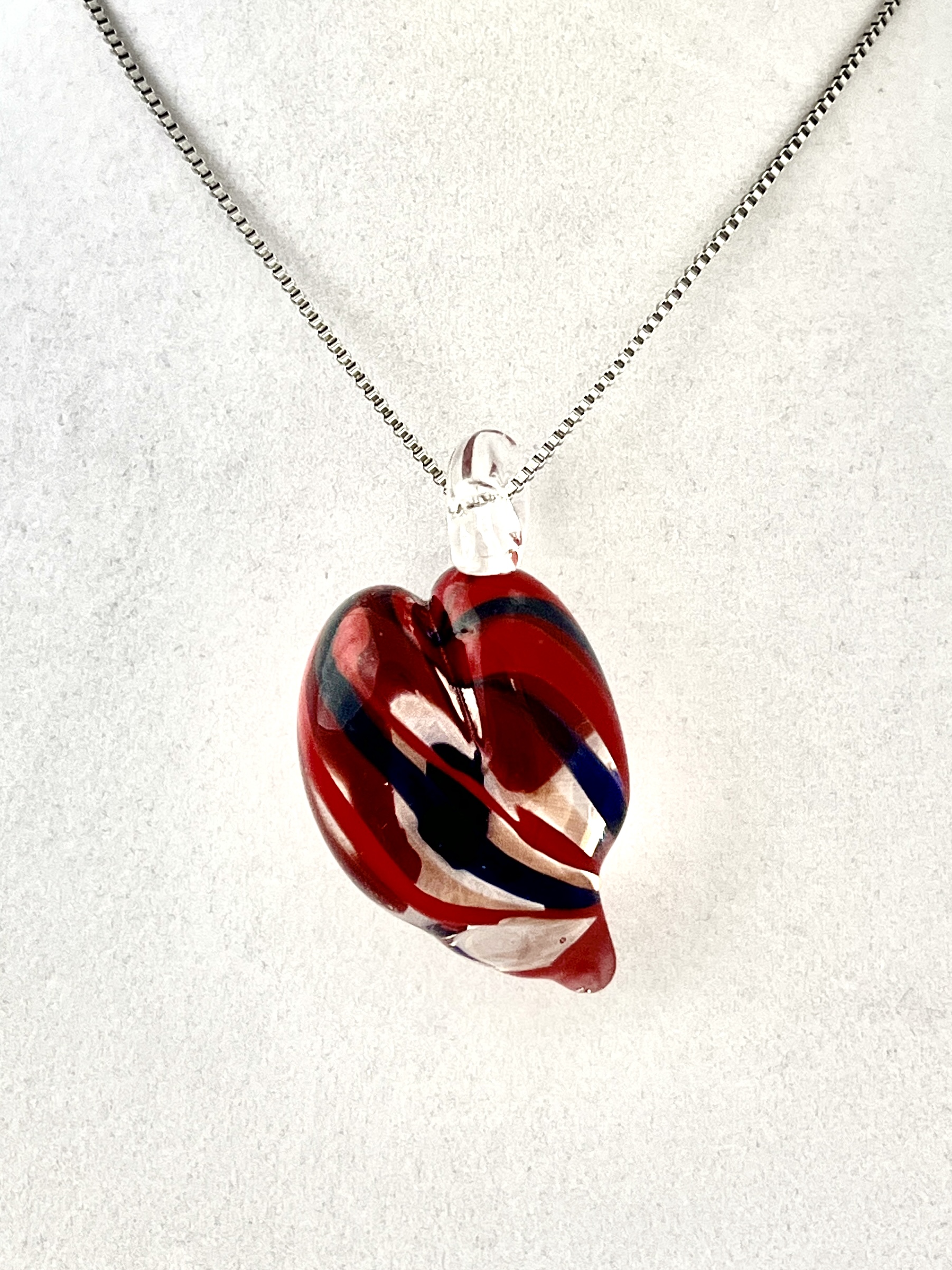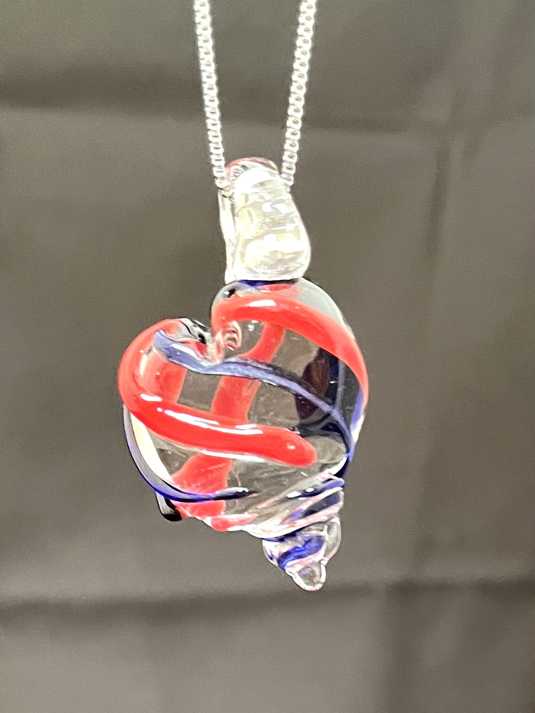 Red and blue Heart Pendant 1.38″H (includes bail)x1.0”W (chain included) Sold