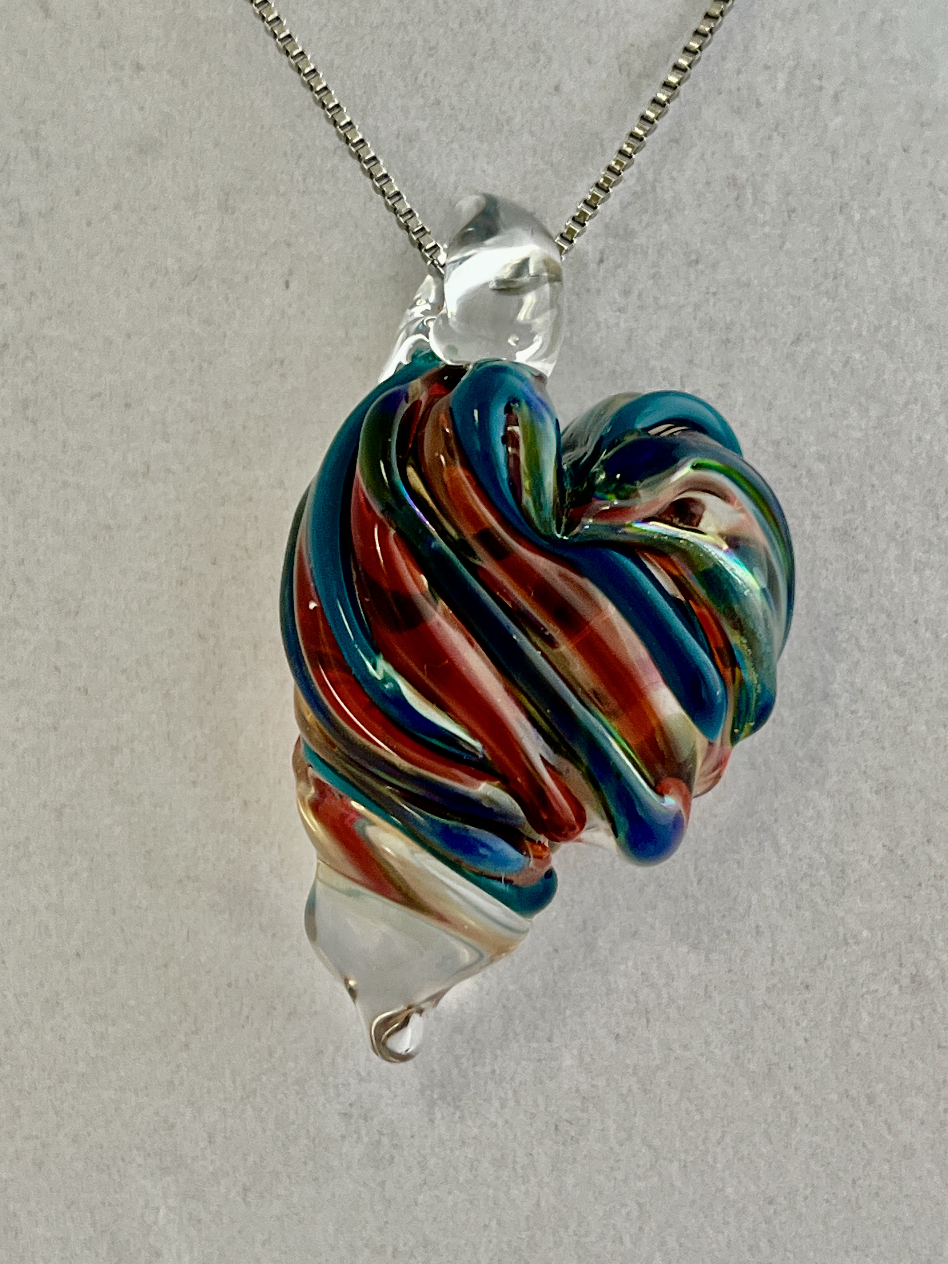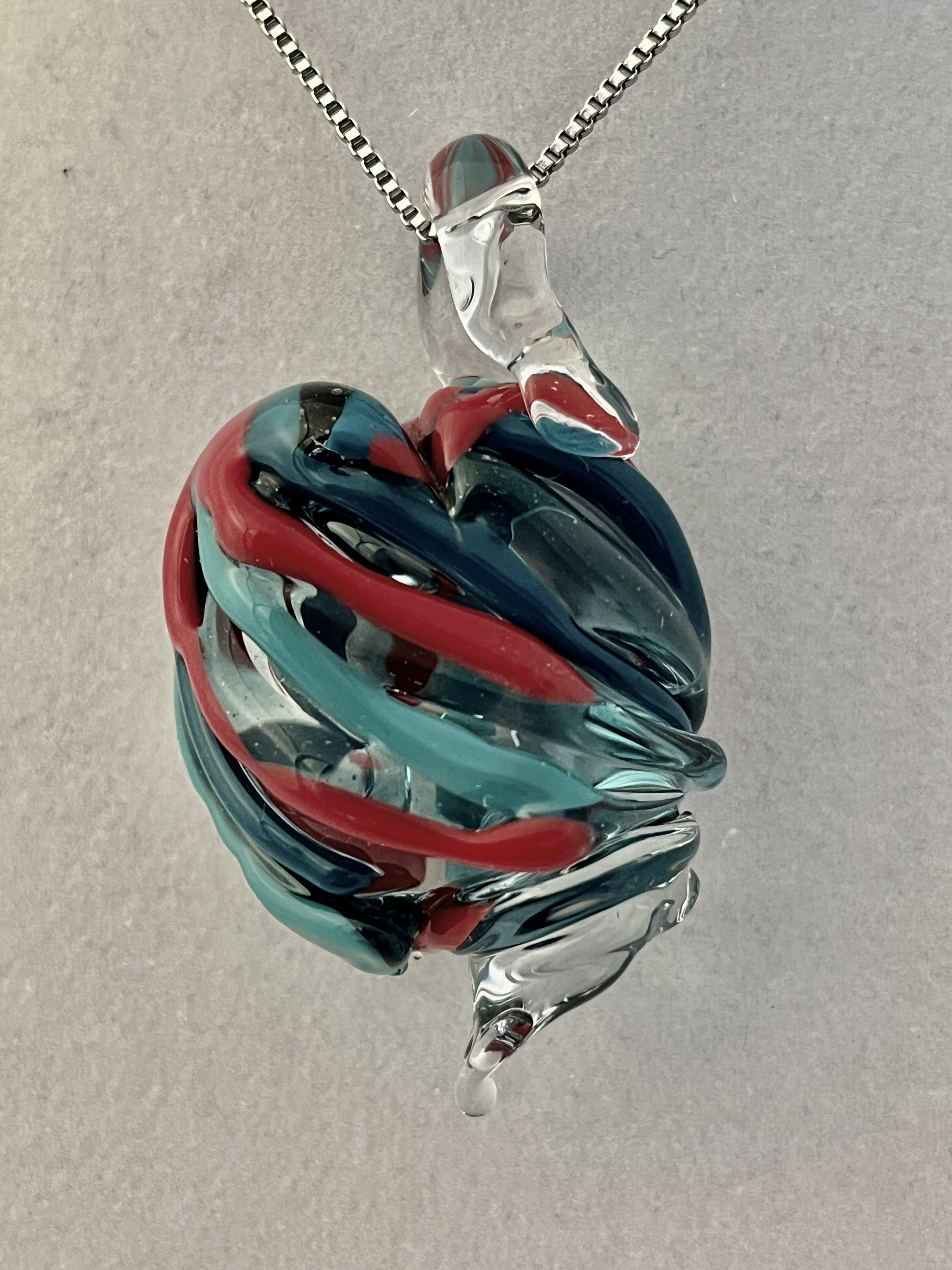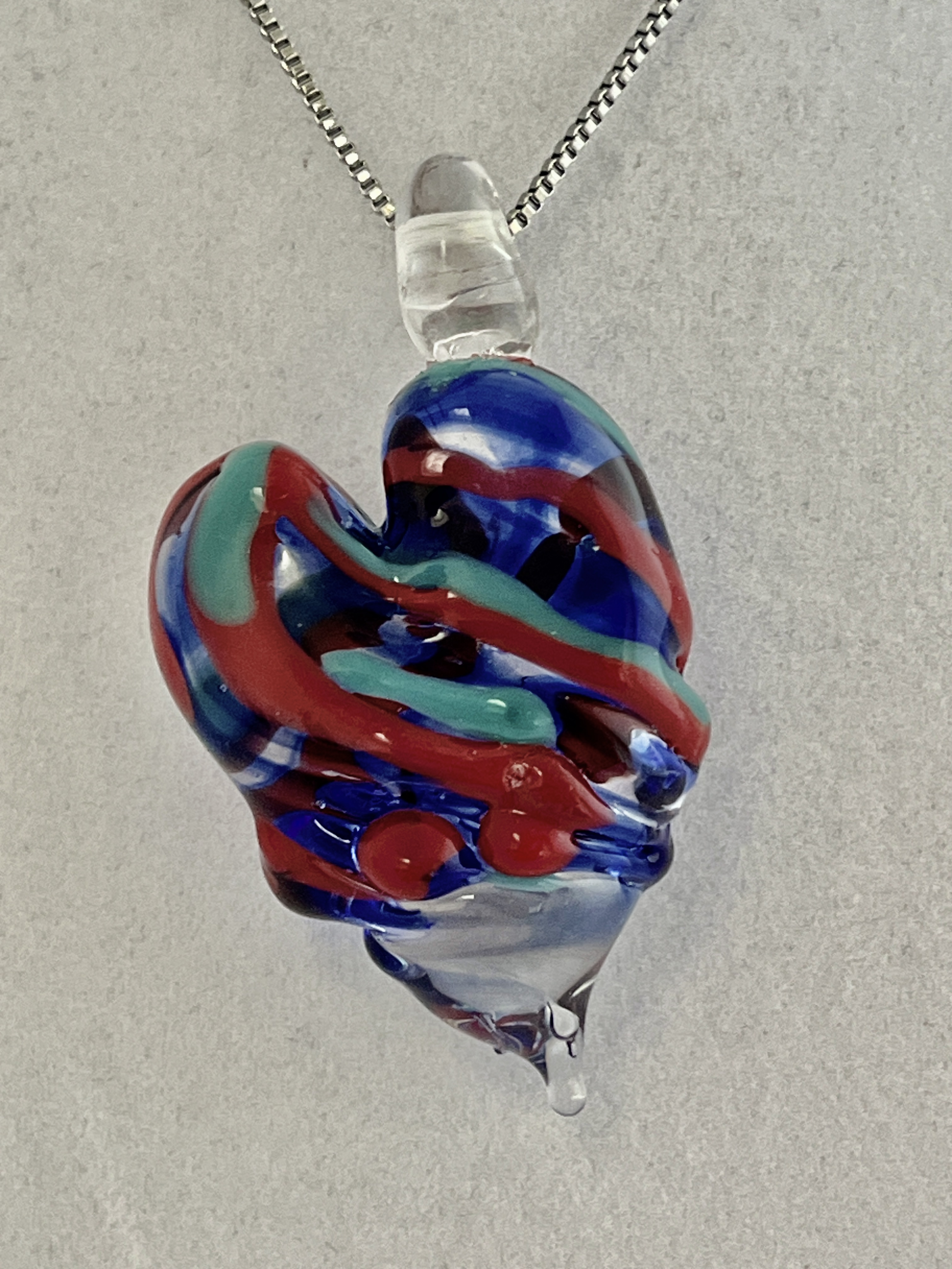 Large Blue, Green and Red Heart pendant 2”H (includes bail)x 1.13”W (chain included) Sold