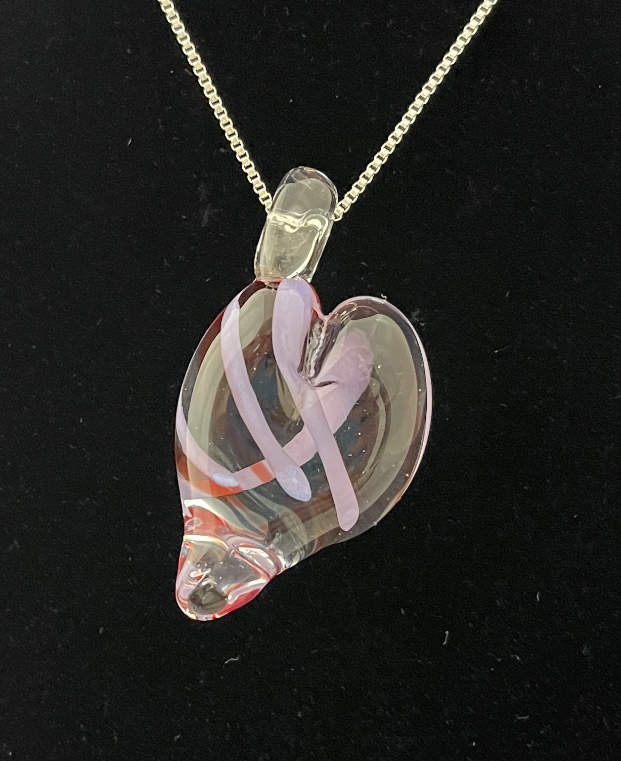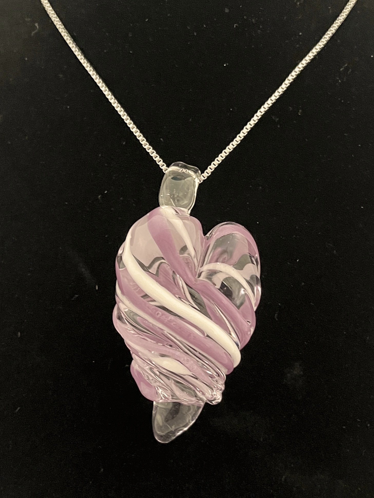Large pink, purple, and white heart pendant 2.25” H(includes bale) x1.25”W (chain included) $35