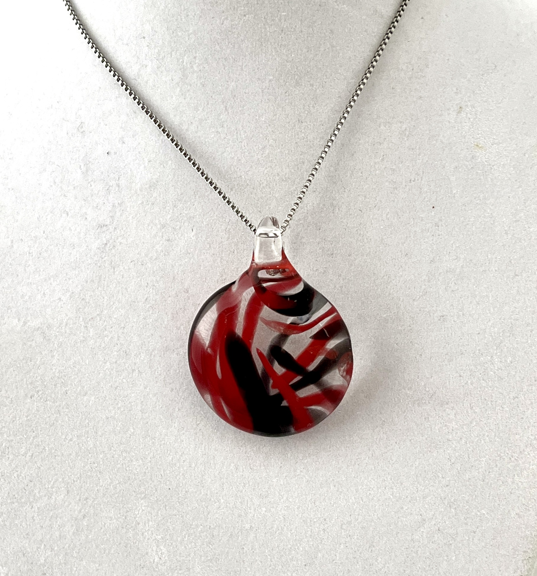 Red and black abstract pendant 1.75” H(includes bail)x1.25” W (chain included) $32