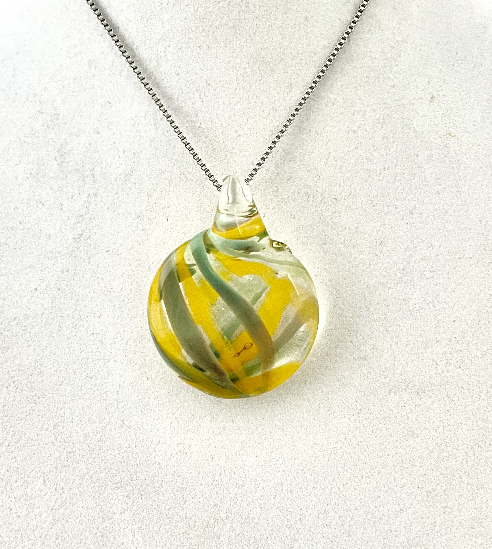 Yellow and light green abstract pendant 1.63”H (includes bail)x1”W (chain included) $27