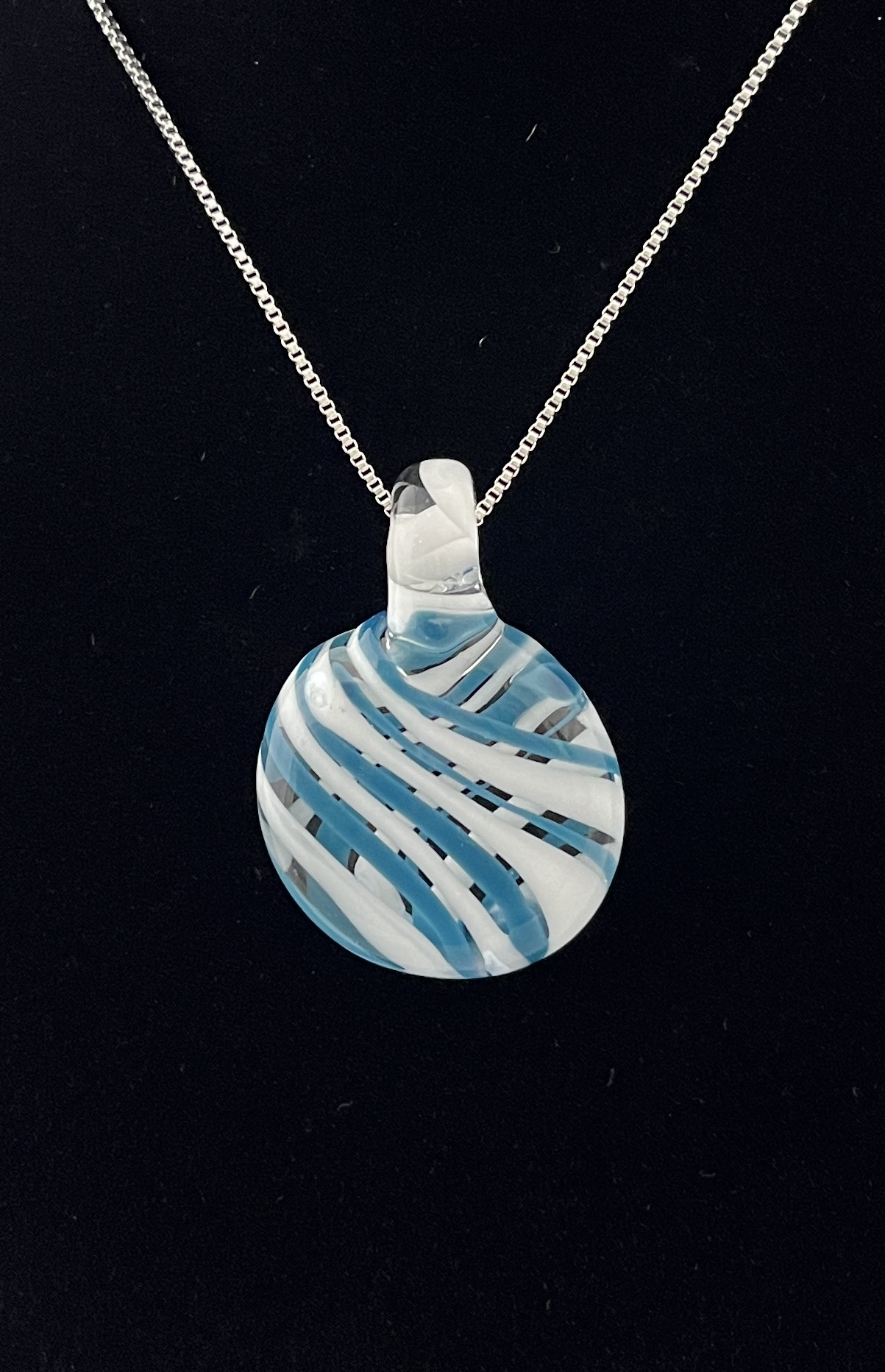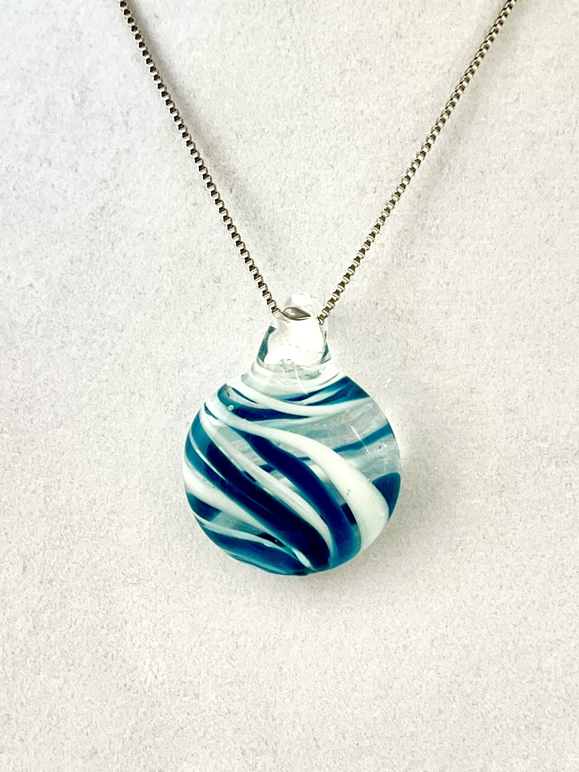 Teal and White Abstract Pendant 1.75” H (includes bale) x1.25” W (chain included) $32