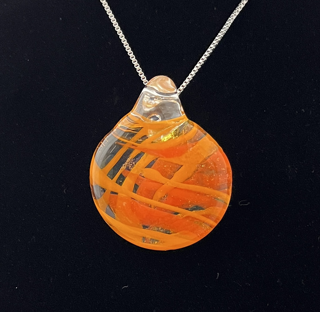 Multi Orange abstract Pendant 1.5” H(includes bale) x1.38” W (chain included) $32