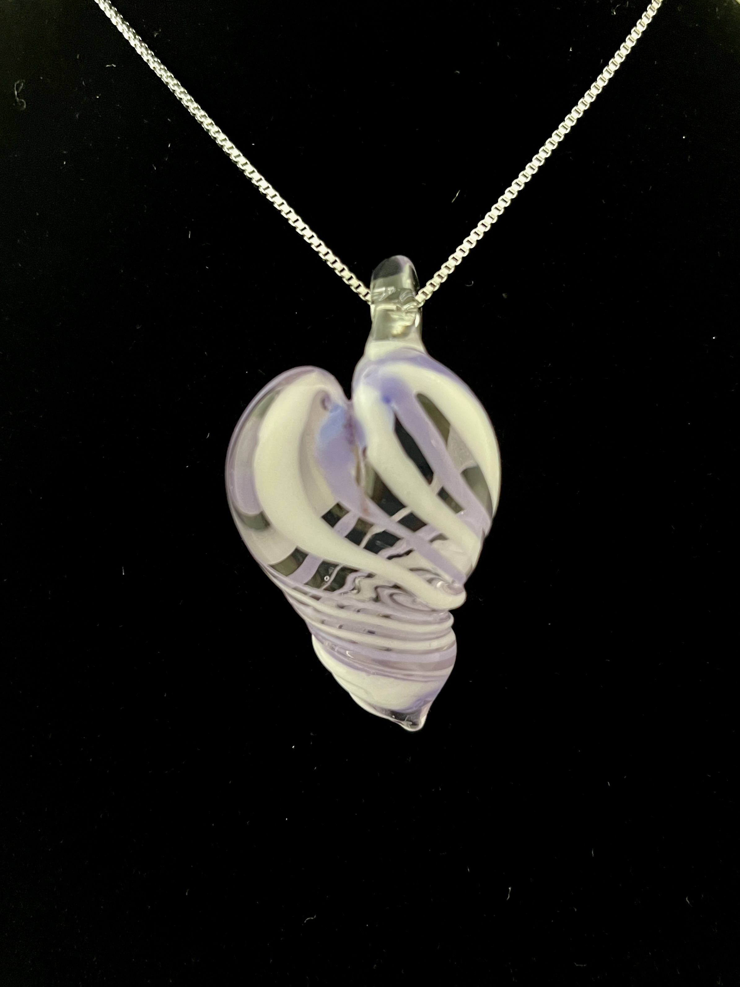 Purple and white Heart pendant 2” H (includes bale) x1.25” W (chain included) $34